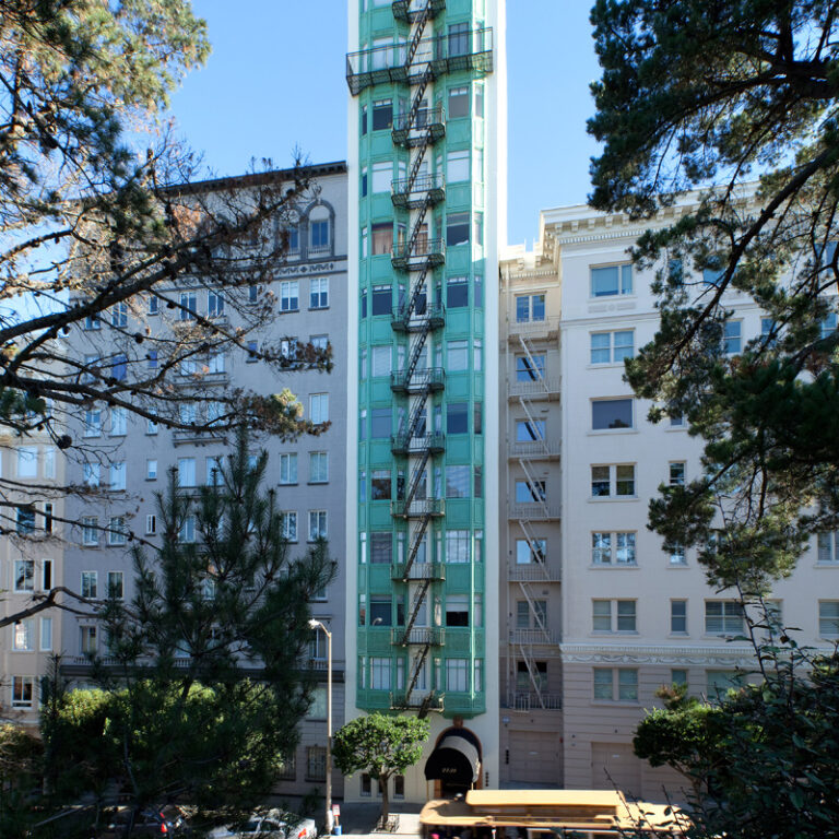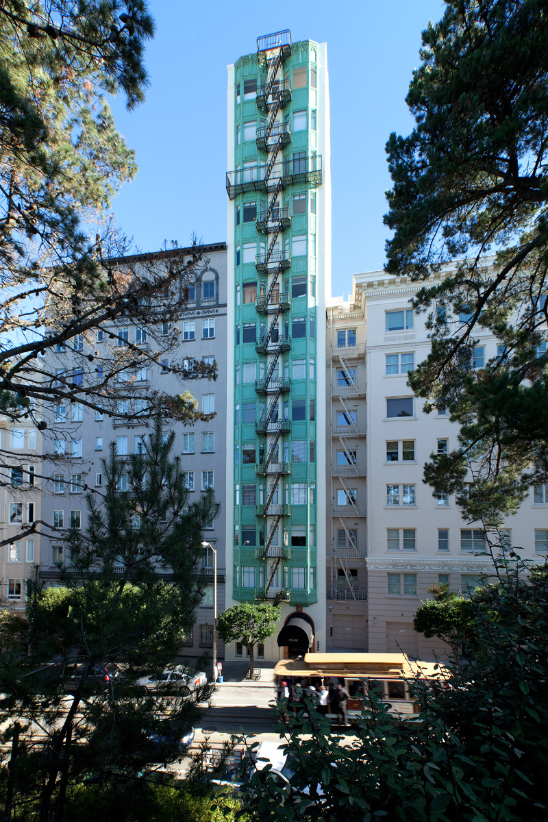 Concrete restoration, spall repair and waterproofing project: VIP elastomeric coatings and faux finish front elevation.